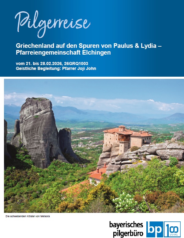 Das Bayerische Pilgerbüro bietet im nächsten Jahr für die Pfarreiengemeinschaft Elchingen eine Pilgerreise nach Griechenland auf den Spuren von Paulus & Lydia an.